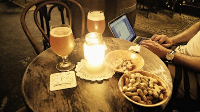 We're embracing the cloud so that we can be productive wherever we might be, sure we both have desks to use because having a big monitor is always nice, but if we want to work on a plane, in a cafe, at a bar or even on the bus en-route to a day of snowboarding we can. And we do.