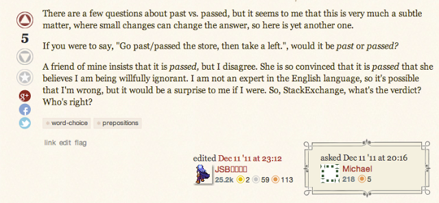 It may be that like myself and Michael, you're not always 100% sure of when to use 'passed' and when to use 'past' (with regards to motion, as opposed to tense), in which case you may want to join the English Language & Usage site.
